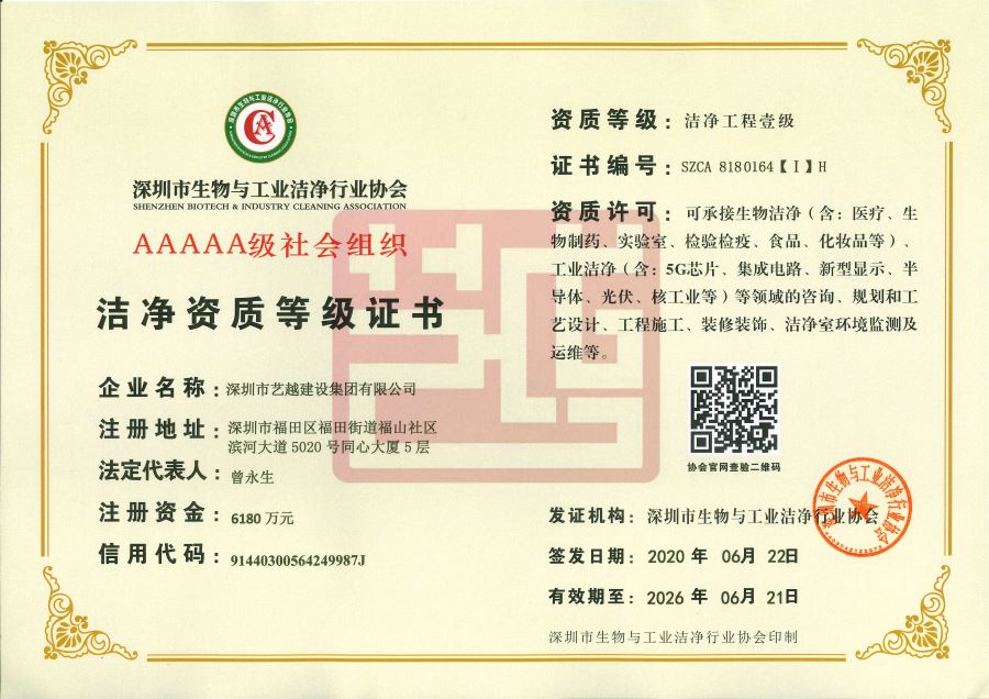 洁净壹级资质